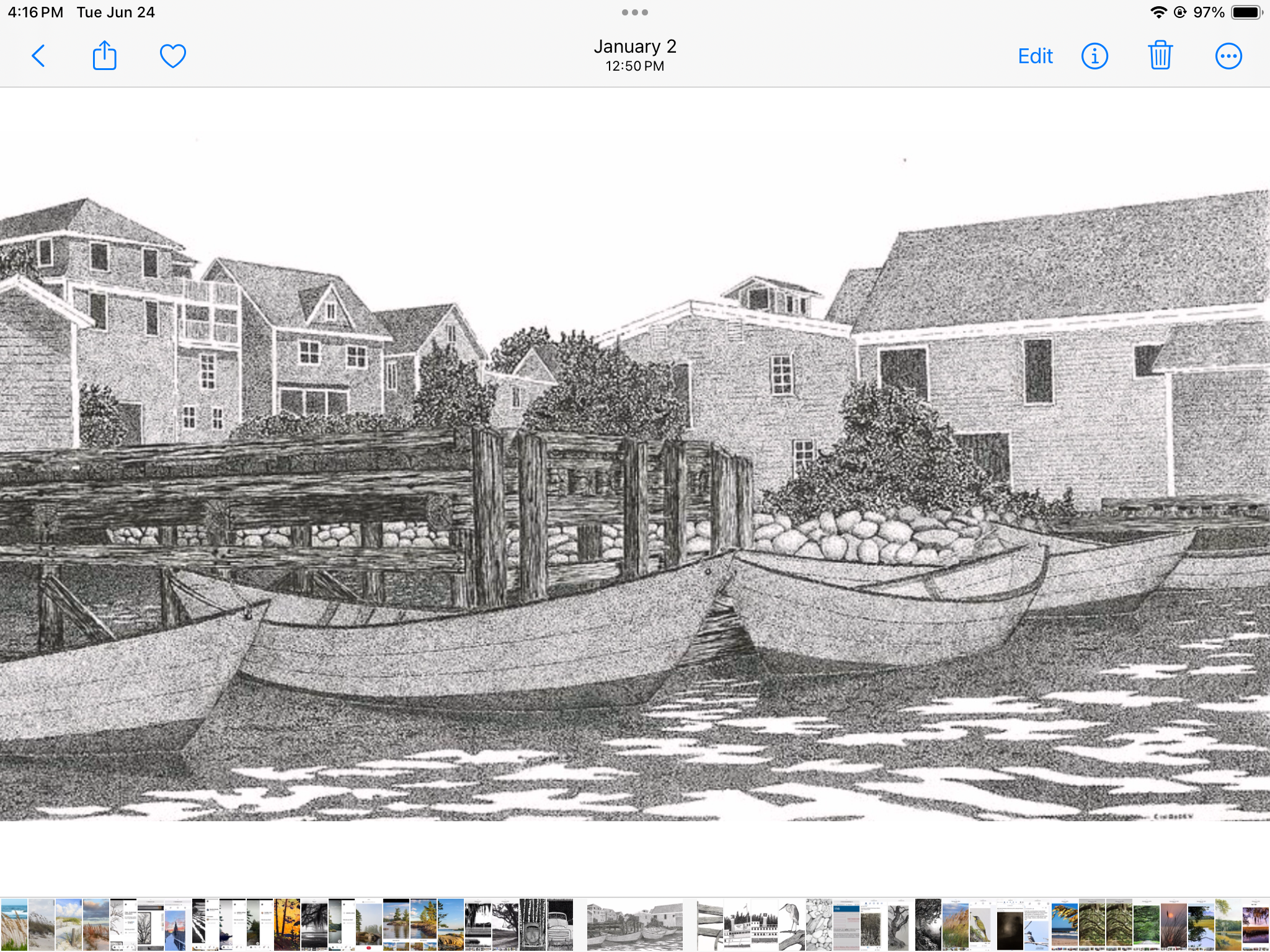 Ed Einboden is an accomplished pen and ink and charcoal artist known for his detailed, expressive work. His art focuses on capturing the character of natural landscapes, architecture, and everyday scenes using traditional black-and-white mediums.